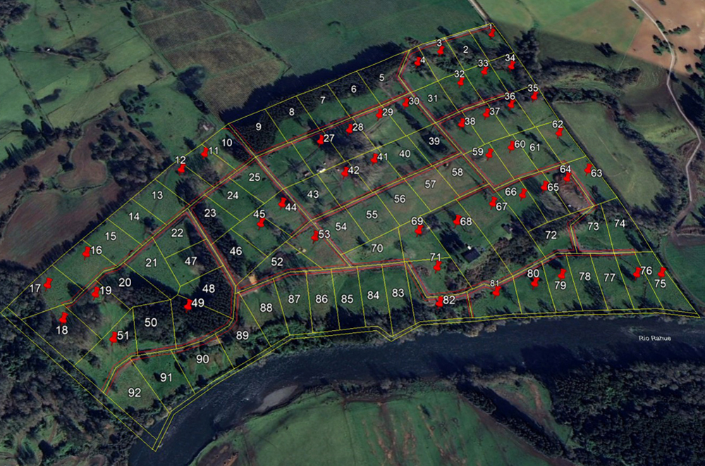 Cada parcela se distingue por su propia geografía: algunas con lomajes suaves, otras con relieves más marcados, unas abiertas hacia la inmensidad del valle del Río Rahue y otras ofrecen un refugio entre silenciosos bosques sureños. Cada terreno ofrece una historia única.